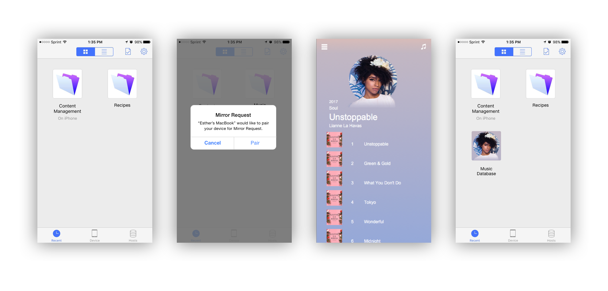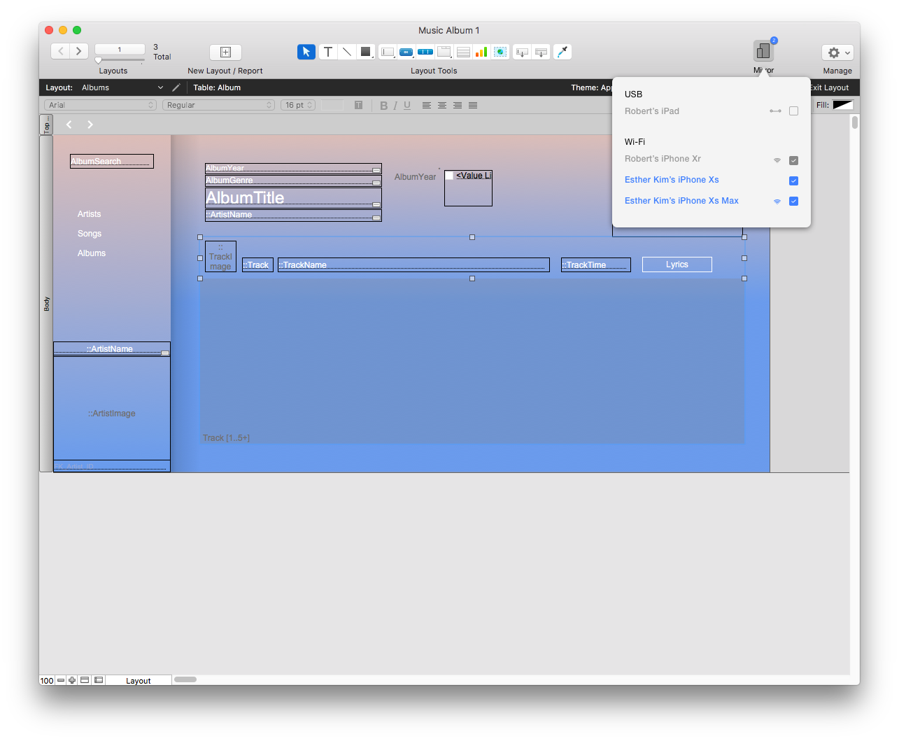 Mirroring allows users to review their layouts in real time whether it's on mobile, tablets, desktop, or web. Users can define the user flow of their app using the prototyping tools available within the platform. By previewing the prototype via mirror view, users can validate their experience and see real time interactions of their app.